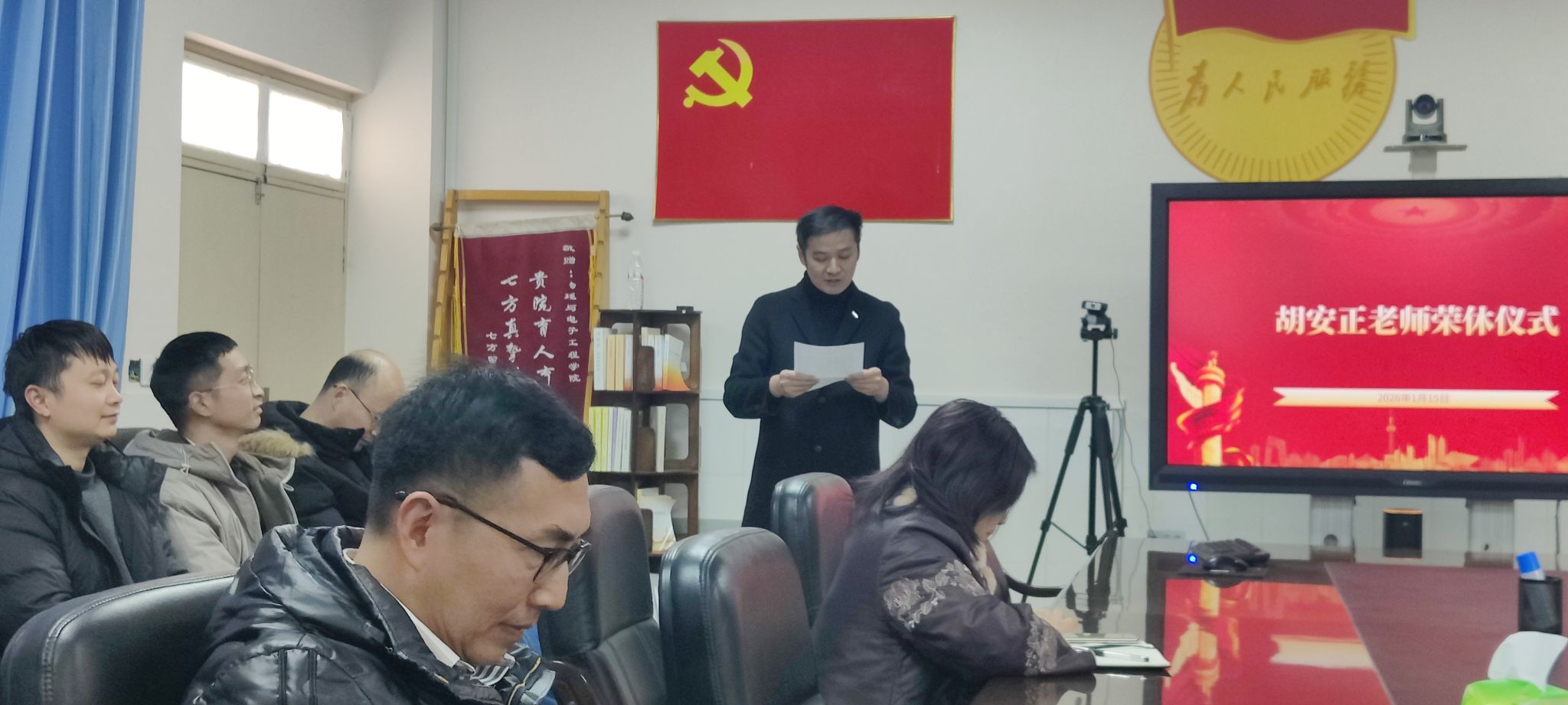 (教工通讯员:董睿)1月15日下午,球友会体育N1-313会议室内暖意融融、情谊深切,学院在此为胡安正教授举行隆重而温馨的荣休仪式。学院领导、教师代表、学生代表齐聚一堂,共同回顾胡安正教授四十余载投身教育、潜心育人的光辉岁月,表达对其深深的敬意与祝福。